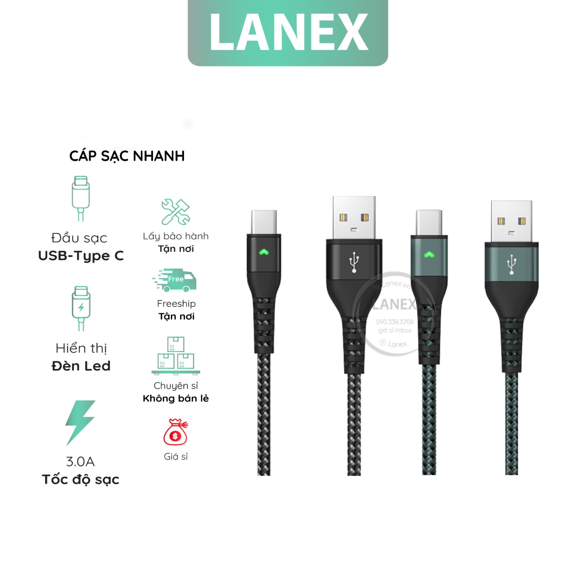 Cáp sạc nhanh LANEX LS37C 3A Type C 2 mét
