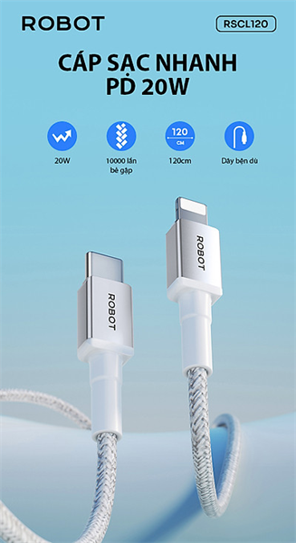 Cáp sạc ROBOT RSCL120 Type C – Lightning 20W