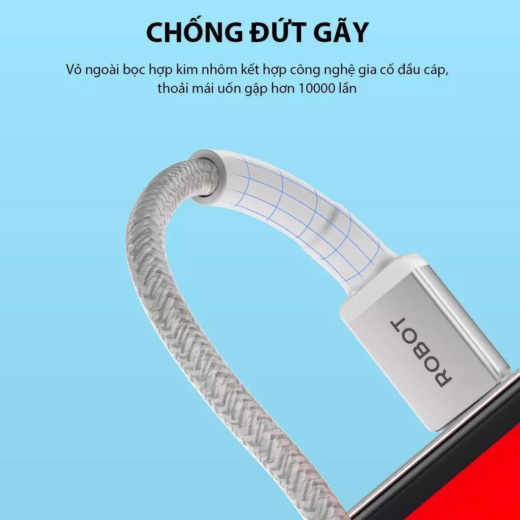 • Vỏ ngoài bọc hợp kim nhôm kết hợp công nghệ gia cố đầu cáp, thoải mái uốn gập chống đứt gãy
