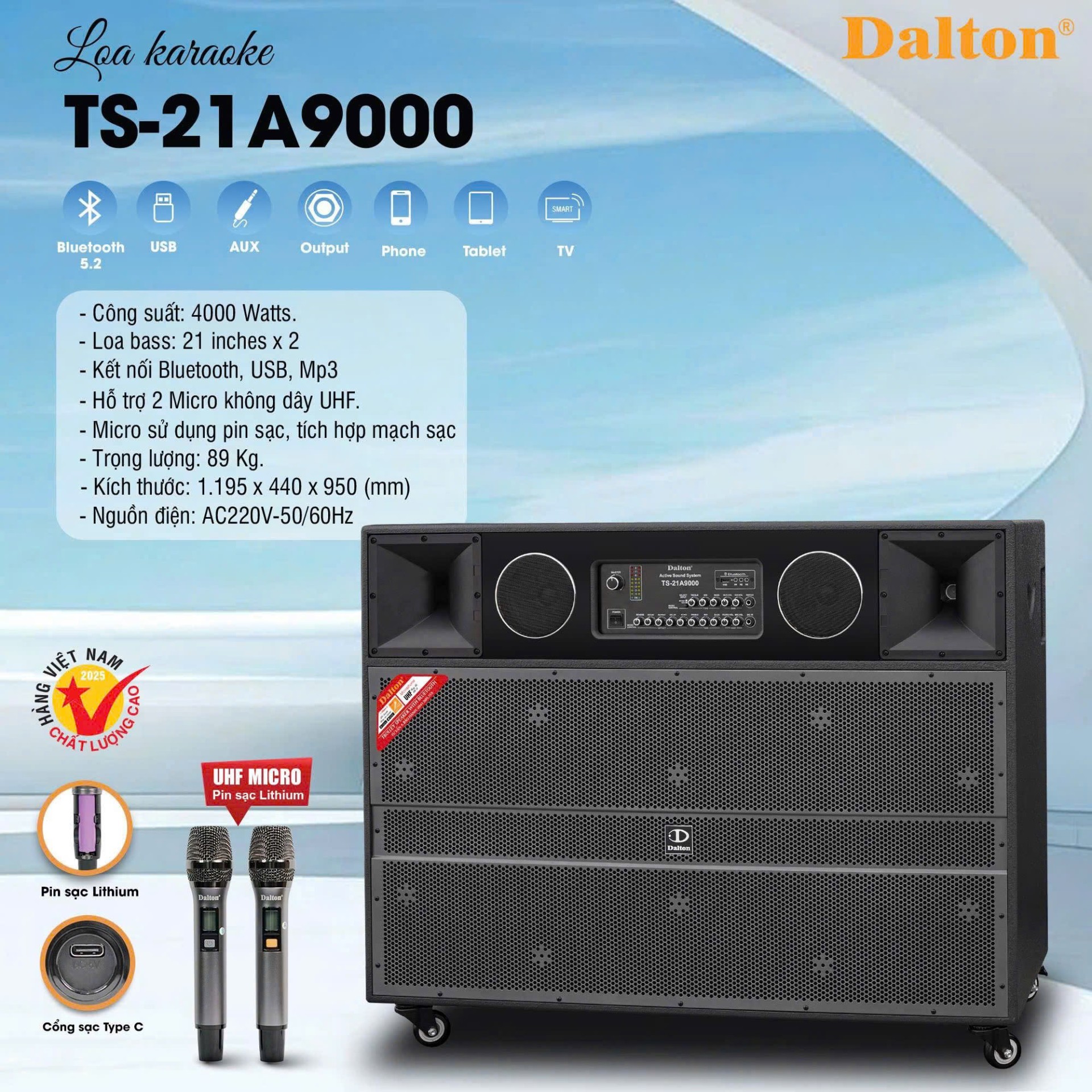 | Kết nối | Bluetooth 5.2, USB, AUX |