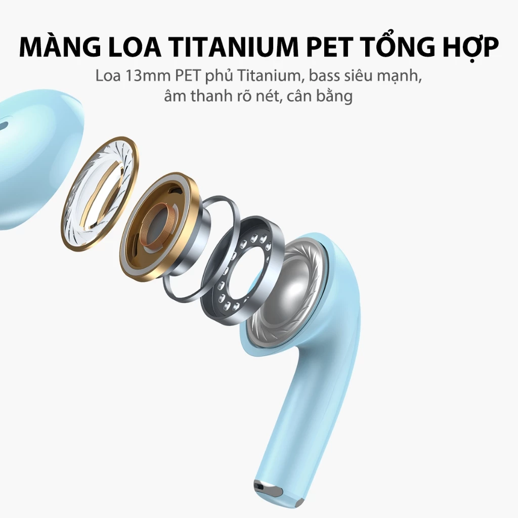 • Loa 13mm PET phủ Titanium, bass siêu mạnh, âm thanh rõ nét, cân bằng