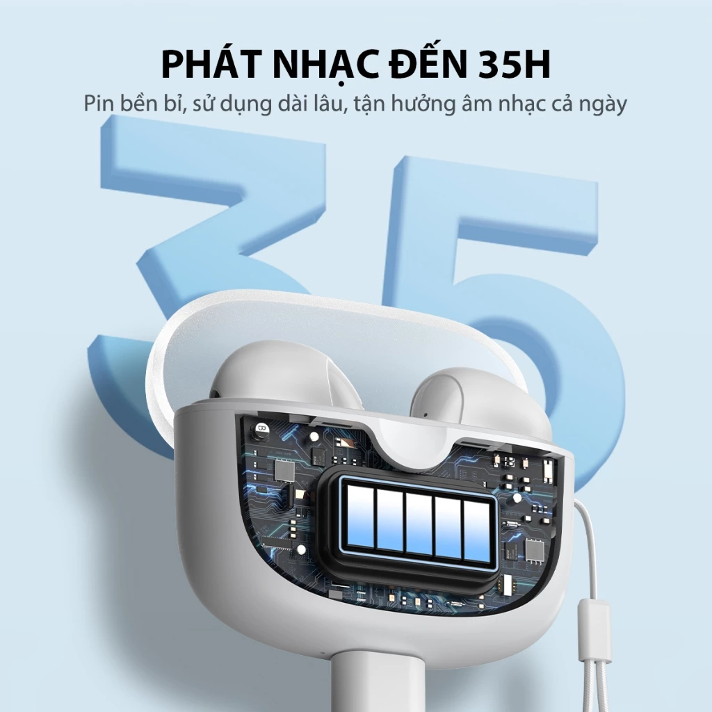 • Pin bền bỉ, sử dụng dài lâu, phát nhạc đến 35H, tận hướng âm nhạc cả ngày