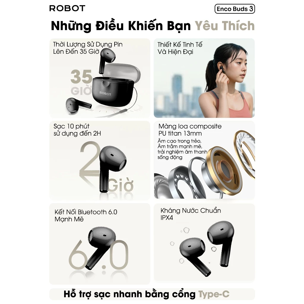 Tai nghe Bluetooth ROBOT EncoBuds 3